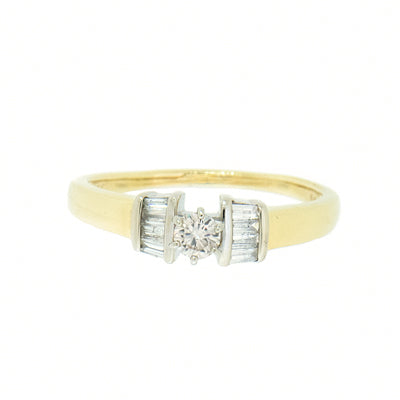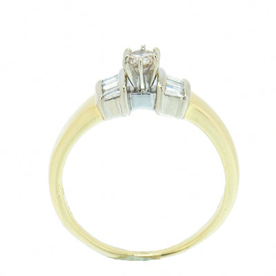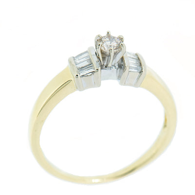14K Yellow Gold Ladies Diamond Engagement Ring with Round and Baguette Diamond Accents. This ring comes with:
