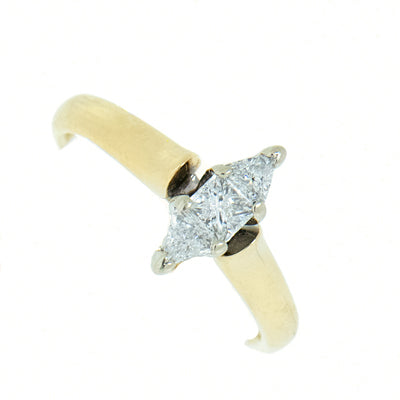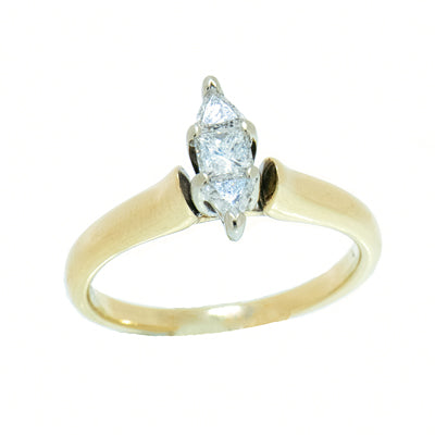 14K Yellow Gold Diamond Illusion Engagement Ring with Rectangular and Princess Cut Diamonds. This ring comes: