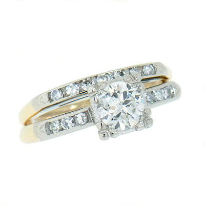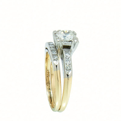 14K Yellow Gold Diamond Wedding / Bridal Set. The engagement ring comes set with:
