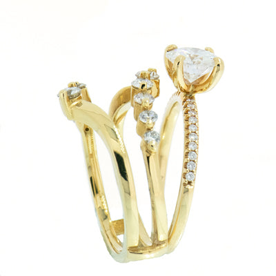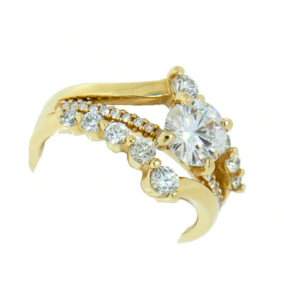 14K Yellow Gold Moissanite and diamond engagement ring set.