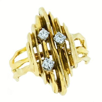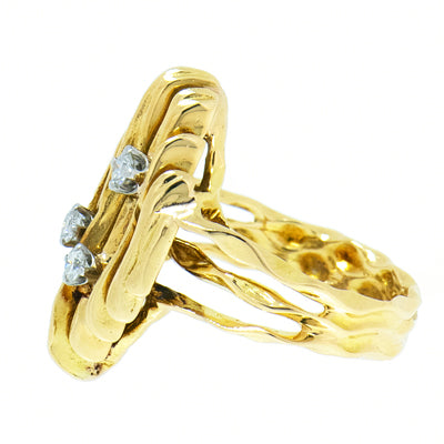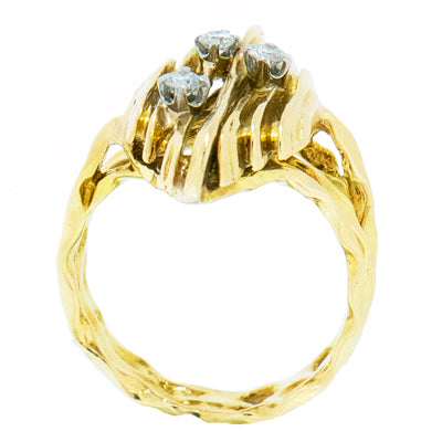 18K Yellow 3 Diamond 0.15ctw Free Style Designer Ring. This ring comes set with: